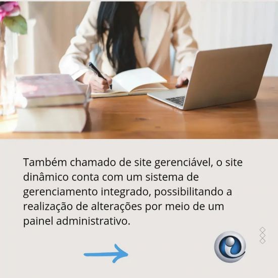 site gerenciável, o site dinâmico conta com um sistema de gerenciamento integrado, possibilitando a realização de alterações por meio de um painel administrativo.