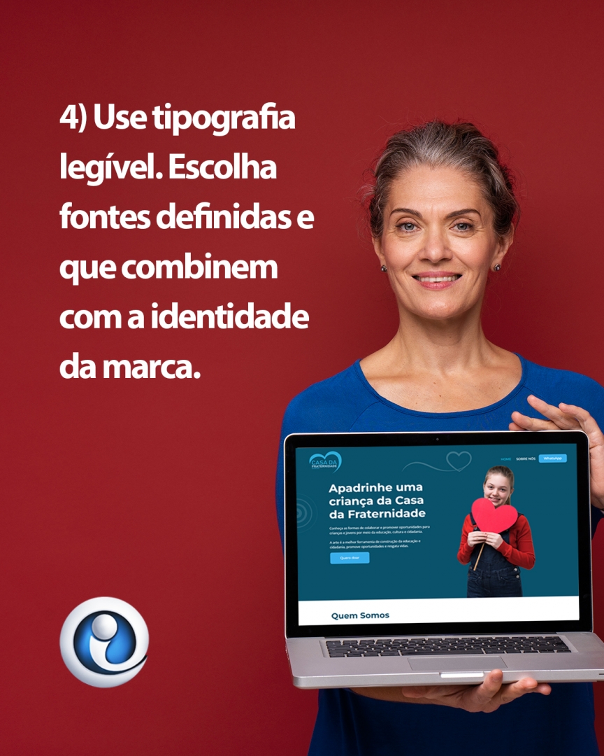 4) Use tipografia legível. Escolha fontes definidas e que combinem com a identidade da marca.